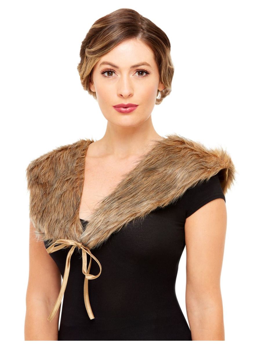 1920s Deluxe Instant Kit in brown - Includes hat and a plush faux fur stole.