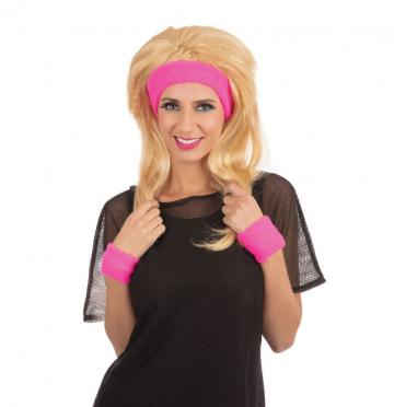 80s Headband and Wristband Set Pink