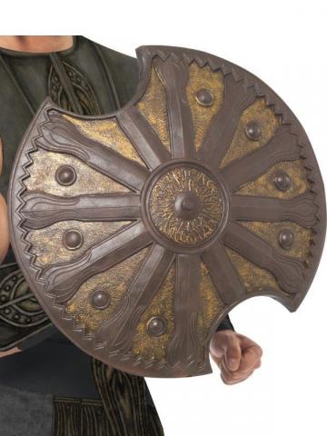This plastic Achilles Shield is brown and gold in colour and comes with two straps on the back.
