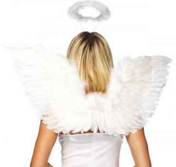 Angel Accessory Set includes a pair of white angel wings and a white marabou halo.
