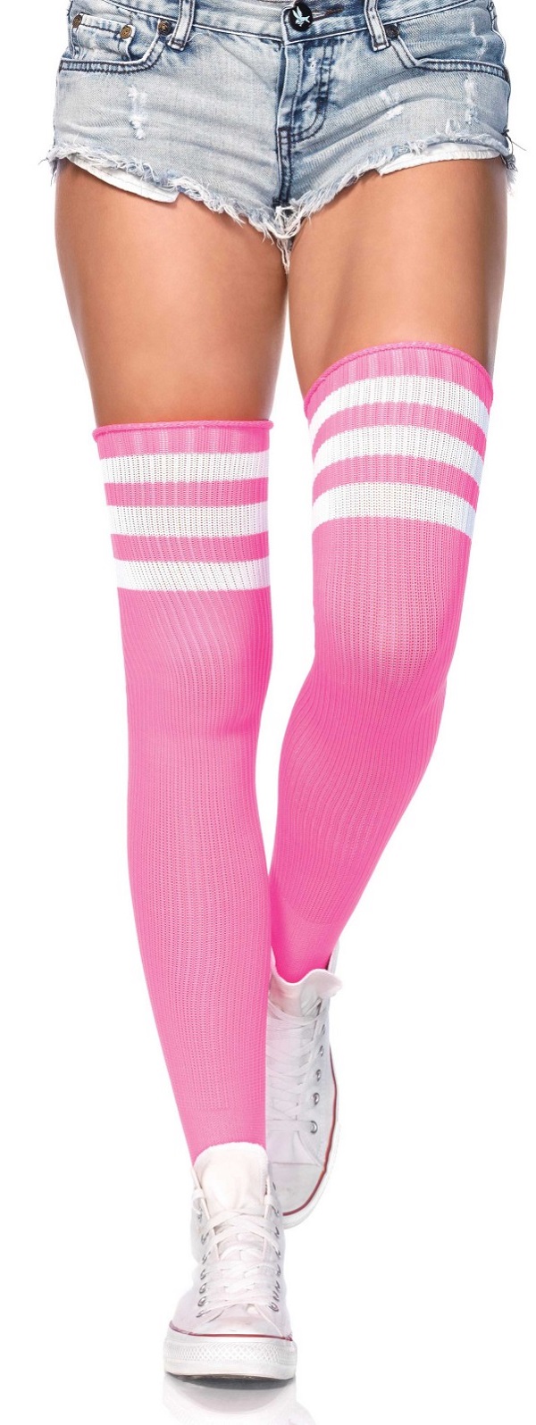 Neon Pink/White Athletic Ribbed Thigh Highs.