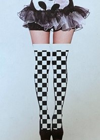 Girls Black and White Checkered Stockings. The alternating black and white squares will show off an artistic look! Suitable as a fun accessory for any Halloween costume for bewitching fun!