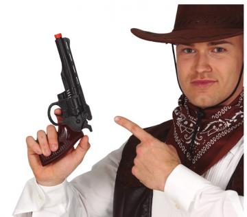Black Cowboy Gun includes a 30cm black plastic toy gun.
