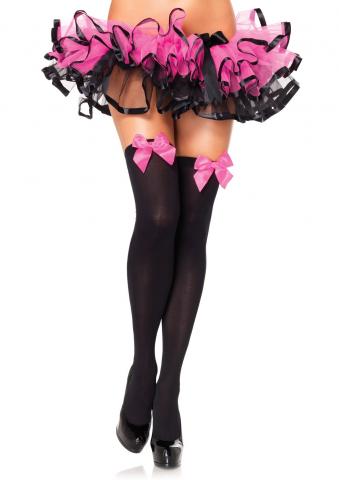 Black Nylon Over The Knee Stockings with Pink Bow.