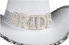 This hat features the word Bride in a pearl detail with a silver diamonte band and a silver sequin detail trim.