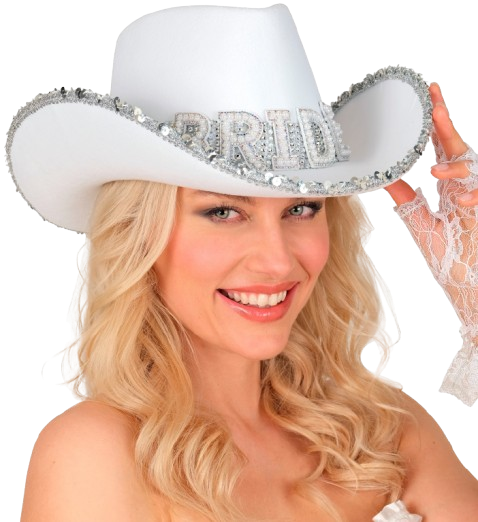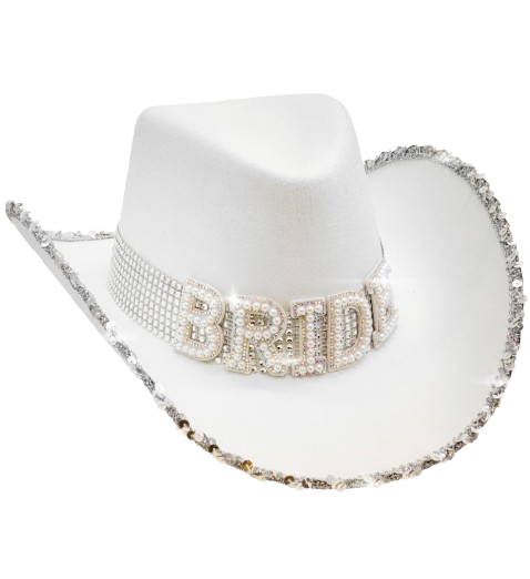 Yeehaw, she said yes, this Bride Hat with Pearls us bringing bling to the Wild West.