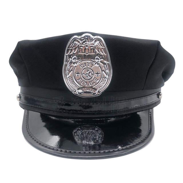 This black hat features a silver city police badge on the front.