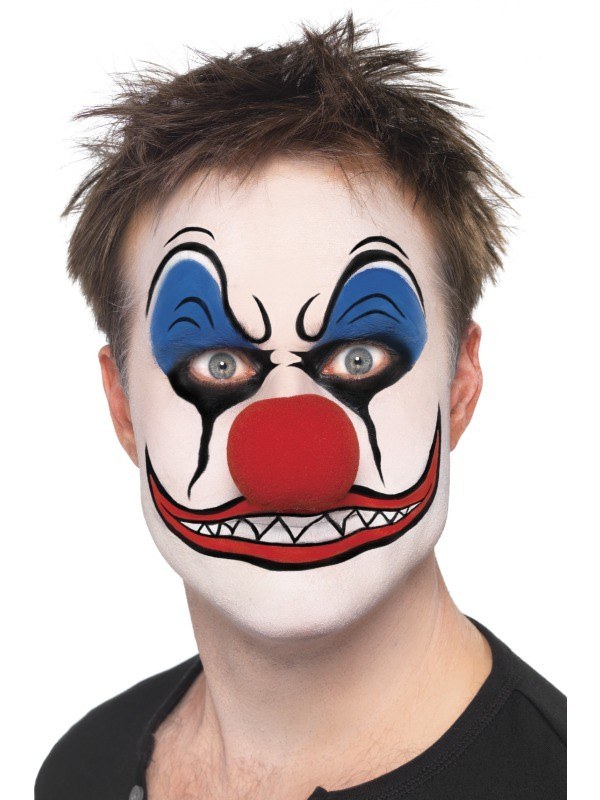 Clown Greasepaint Make-up Set contains a red foam nose, sponge applicator, a disk of white face paint, a disk of blue, red and black face paint, blue and red crayon and a brush for accurate applications. Achieve a professional look with easy step-by-step instructions included on the package.