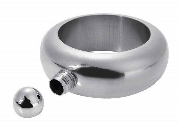 Stainless Steel Flask Bangle Bracelet. Perfect for any festival, outdoor event or traveling. It features an attached corrosion-proof screw-on cap. Available in silver or gold.