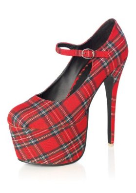 Mary Janes, red plaid shoes with a sexy 6.5" stiletto heal and a 2.5", covered platform.