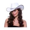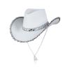 White cowgirl hat with sequin detailing.