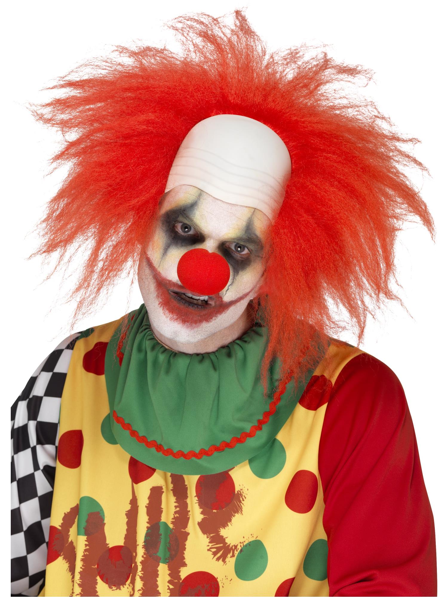 This Deluxe Clown Wig features a shiny bald head with bright red hair around the edge—perfect for honking horns, telling terrible jokes, and dramatically tripping over your own oversized shoes.