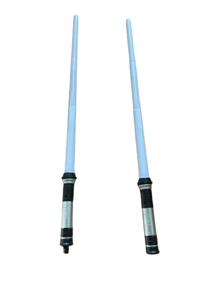 - The swords feature glowing white blades that light up at the press of a button, enhancing your cosmic adventure whether you're fighting for the forces of good or evil.