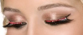 Black eyelashes with red crystals.