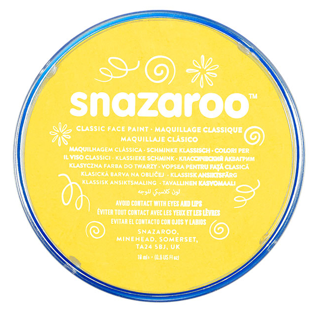 Snazaroo Bright Yellow face and body paint. Easily removed.