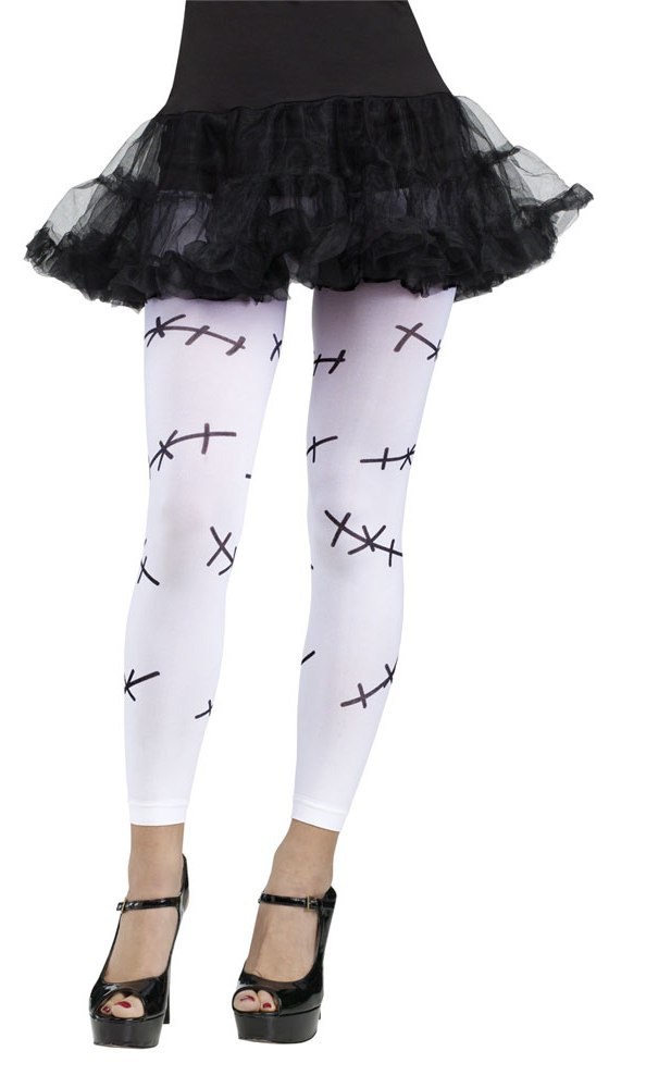 White Footless Tights with mock stitching.