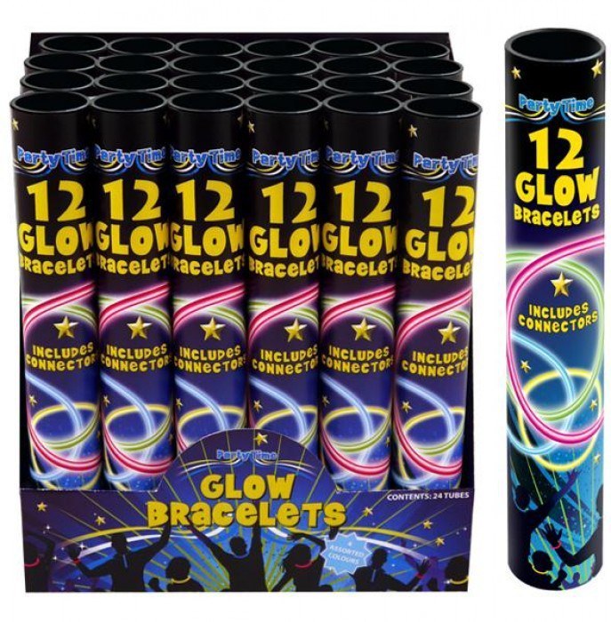 12 Pack of multicoloured Glow Bracelets, Connectors included.