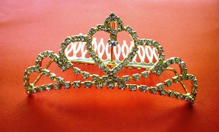 Features a yellow gold tiara with diamanté and hair-slide attachment.