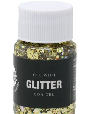 The easy-to-apply gel formula contains Gold glitter particles suspended in a smooth gel base, making it simple to apply .The glitter gel dries quickly and adds a bold, sparkling finish to any costume or festive look.