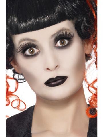 The Gothic Make Up Set includes a blue, black and white facepaint pallet, black lipstick, eyelashes, sponge and brush. Packet has step by step instructions.