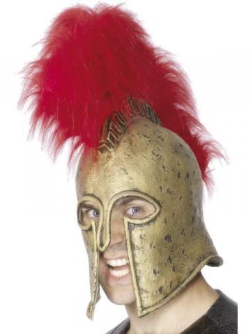 Our gold Greek Helmet with red hair crest is perfect to add to any Greek style costume or centurion costume.