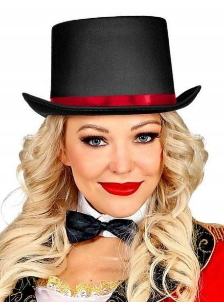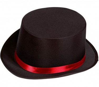 Complete any Mad Hatter look with this stylish Showman Ringmaster Top Hat. This includes a black satin top hat decorated with a simply red ribbon. This is perfect for any fancy dress party!