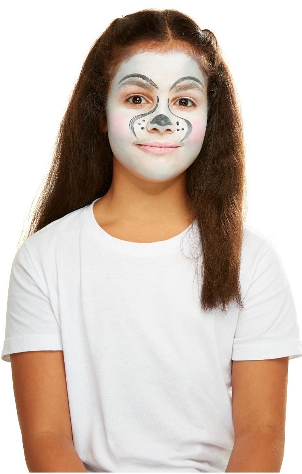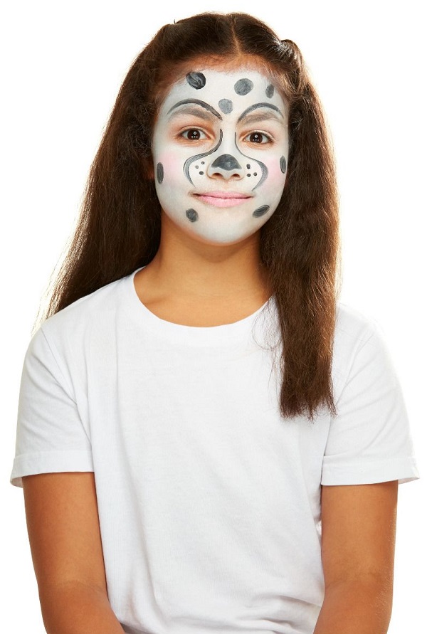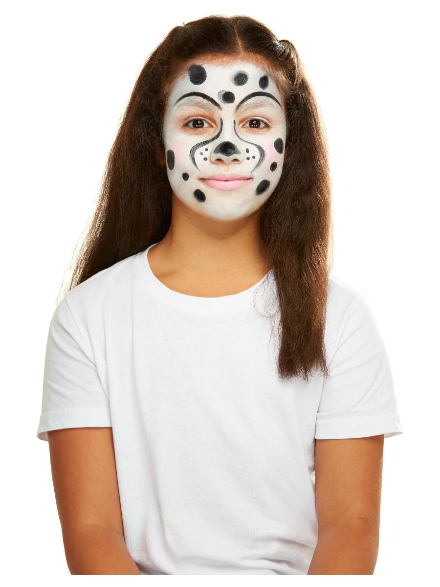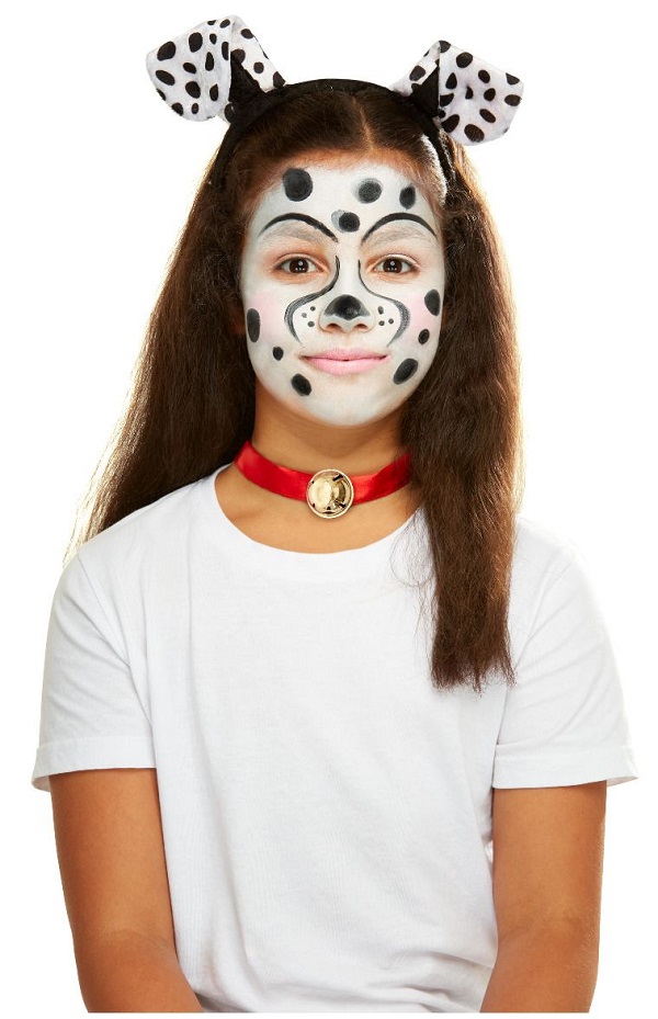 Kids Dalmatian Kit includes black and white ears on headband, matching tail and collar. To complete the kit a make-up palette is also included.