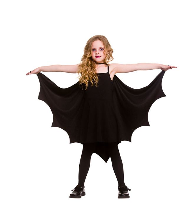 This classic black cape is perfect for Halloween, costume parties, or any fun dress-up occasion. The cape features bat-like wings that extend from the shoulders to the wrists, giving an authentic and spooky vampire look. 100% Polyester.