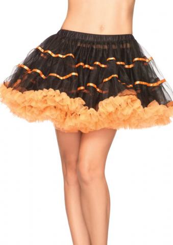 Orange and black Layered Satin Striped Petticoat. Perfect to add volume and length to any dress or skirt.