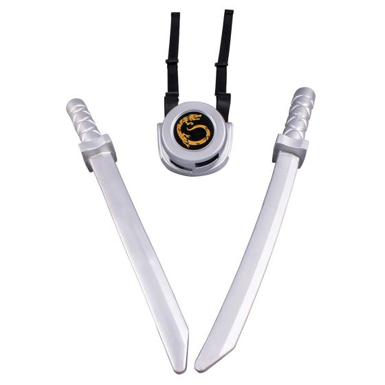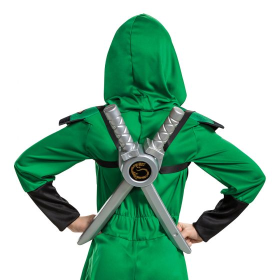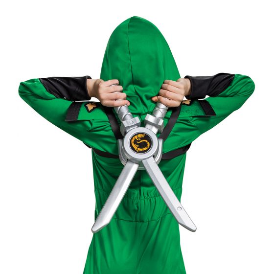 Official Licensed LEGO Ninjago Weapons Set. Complete your Green Ninjago costume with this Deluxe Branded Dual Swords and back Holster.