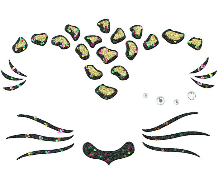 Transform yourself into a Leopard this Halloween with this quirky face art. This features glittery gems and face stickers. Make your makeup look more remarkable with extra sparkle thanks to the sequins and diamonds included.