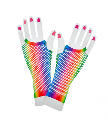 Accessorize your 80's fancy dress with our 80's rainbow long net gloves.