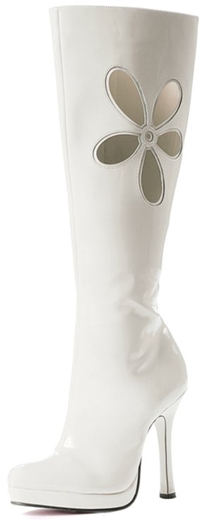 Love Child White Knee High Boots with cut out flower design.