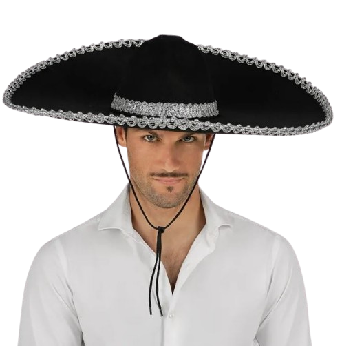 Get ready to fiesta in style with this Mexican Wide Black Hat, complete with flashy silver stitching.