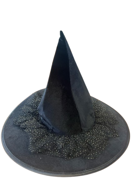 This classic black witch hat is the perfect accessory for any sorceress, blending traditional style with a touch of dark glamour.
