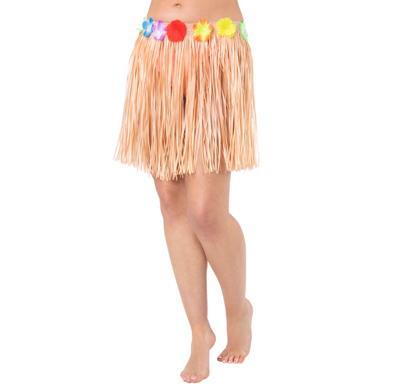 Get in the summer spirit with our Natural Hula Skirt with elasticated waist and colourful flower details.