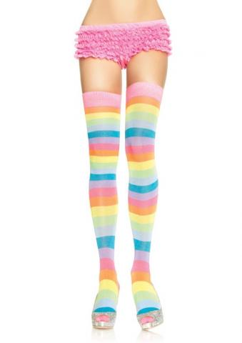 Acrylic Neon Rainbow Multicolour Thigh High Stockings