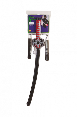 Ninja Accessory Kit includes a ninja hood, throwing star, sword and 2 sais.