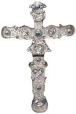 Metal colour cross with ornate features and cord to hang from neck.