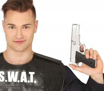 Plastic toy silver gun. Size of the gun: 24cm
