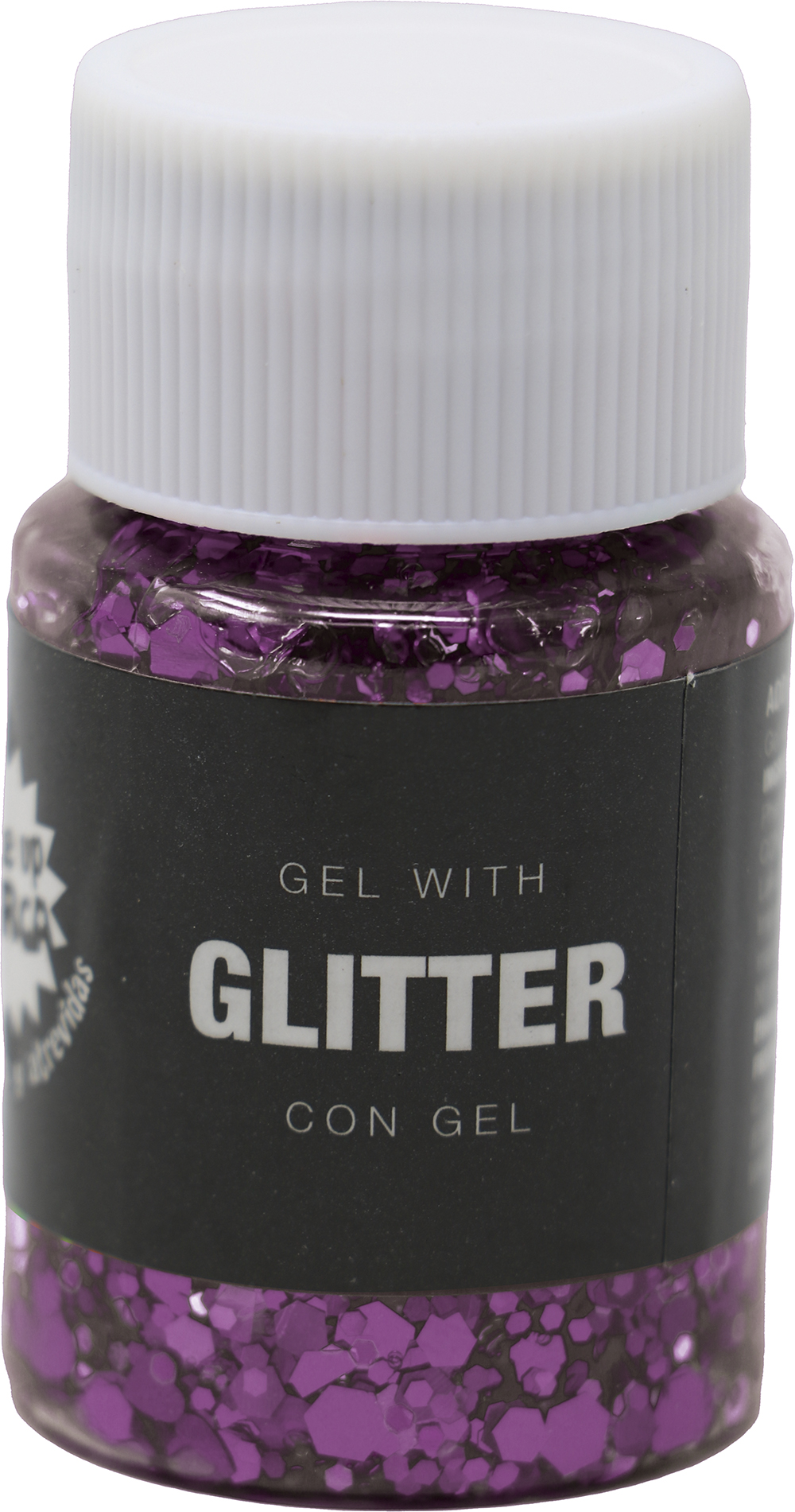 This purple glitter gel slicks on in seconds for instant sparkle—perfect for festivals and parties.