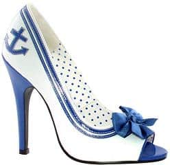 Sexy Shipmate high heels. White with Blue bow and anchor trim. 4.5" heel.