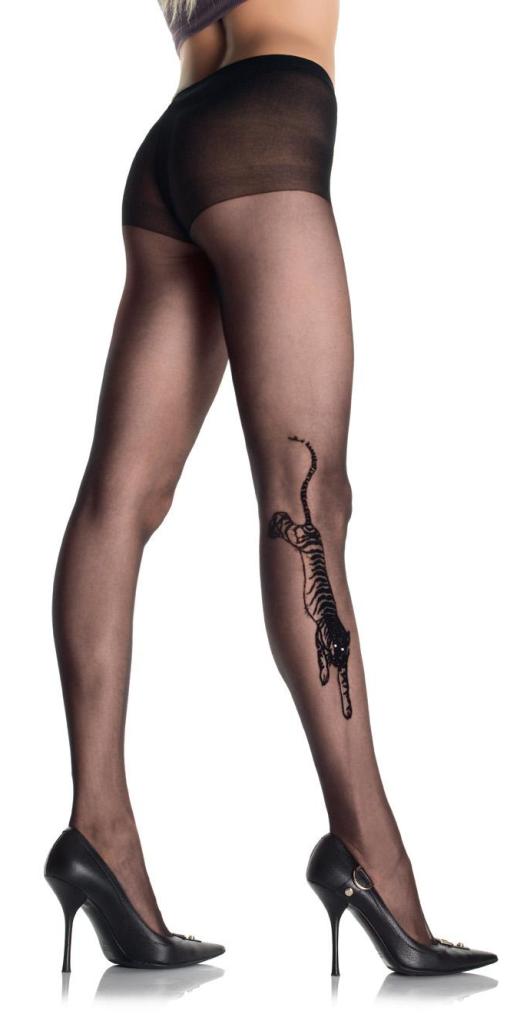 Tiger Tattoo sheer tights with rhinestone eyes.