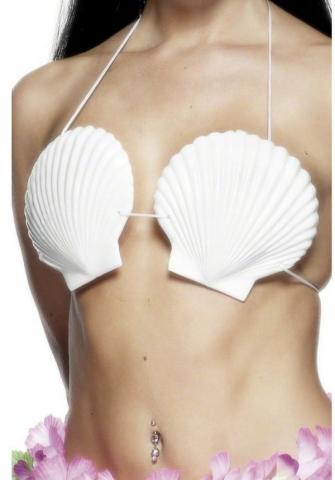 White Sea shell bra with string to hold around neck and back.