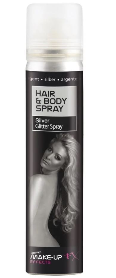 75ml bottle of Silver Hair and Body Hairspray. Temporary hair colour.