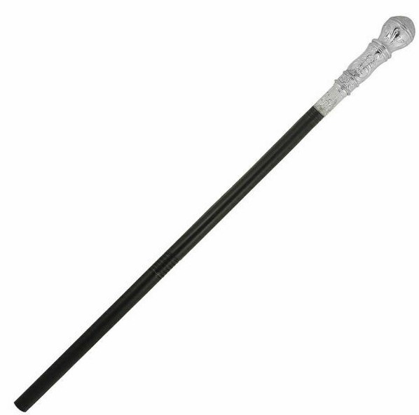 Silver Top Pimp Cane - 3 piece set. This is ideal for completing Gangster, Willy Wonka, Dracula or Pimp fancy dress outfit. The top of the cane is made from Black plastic with a detailed silver handle. The cane is made up of three pieces which are pushed together.