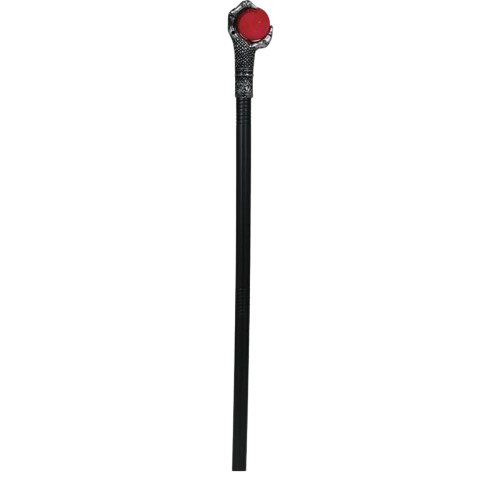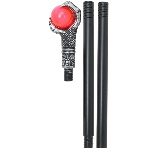 A mystical staff featuring a striking red orb held firmly in a claw-like grip — perfect for fantasy costumes, magical characters, or anyone looking to add a touch of dark enchantment to their look