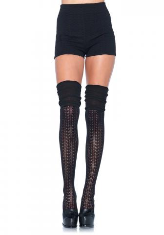 Black Acrylic Pointelle Over The Knee Scrunch Socks.