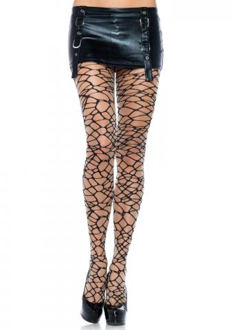 Black/Nude Sheer Spandex Woven Crackle Print Pantyhose.