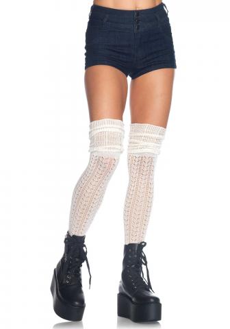 Ivory Acrylic Pointelle Over The Knee Scrunch Socks.